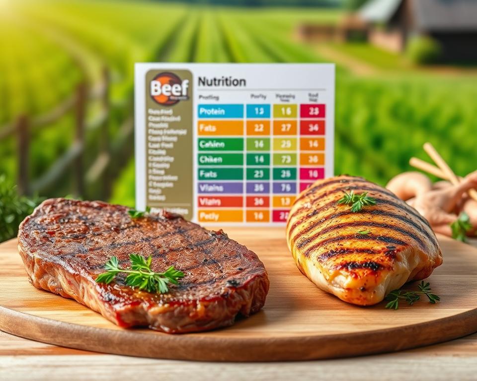 - Wołowina vs kurczak – wartość odżywcza zostanie przedstawiona liczbowo, z jasnymi przykładami użycia.